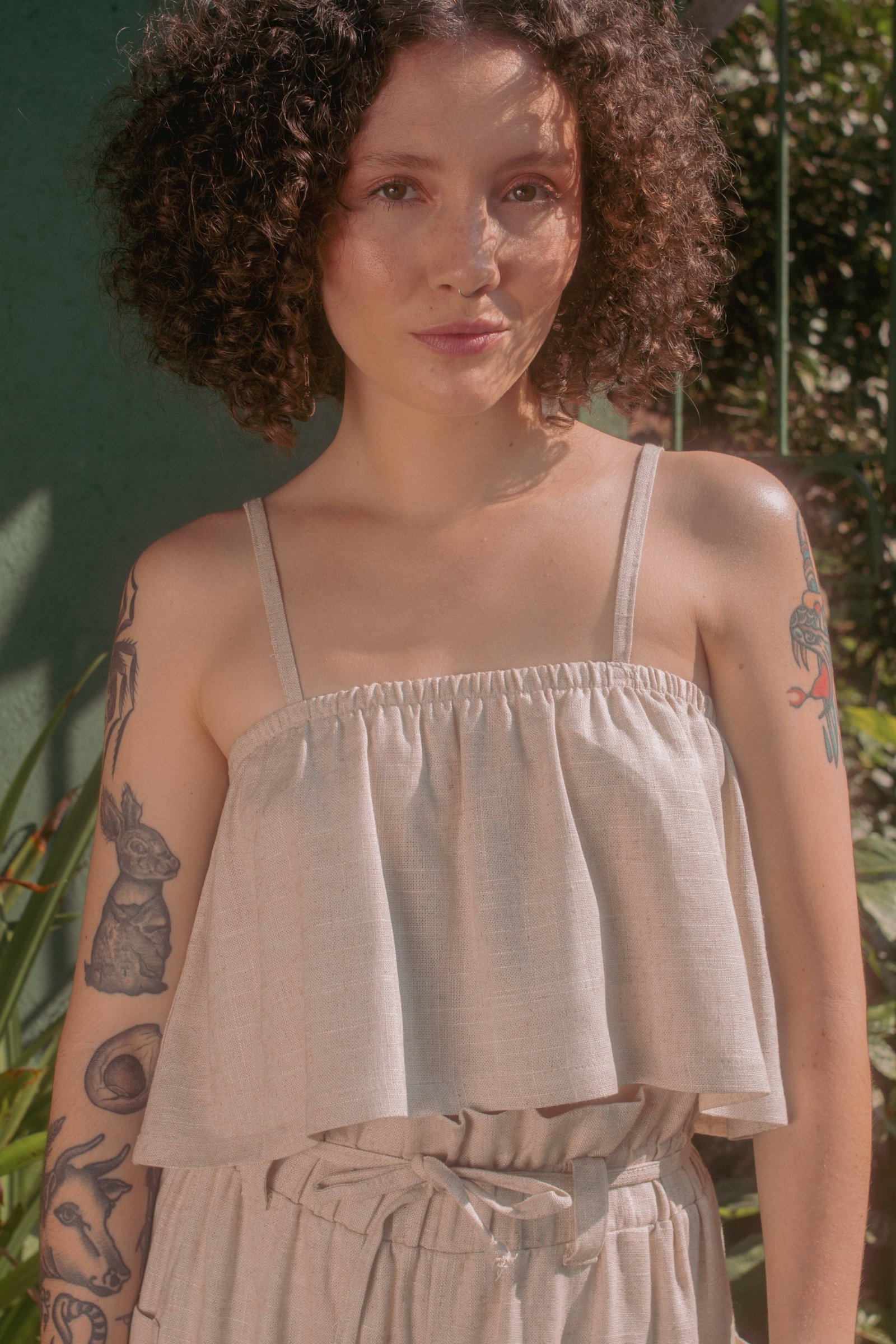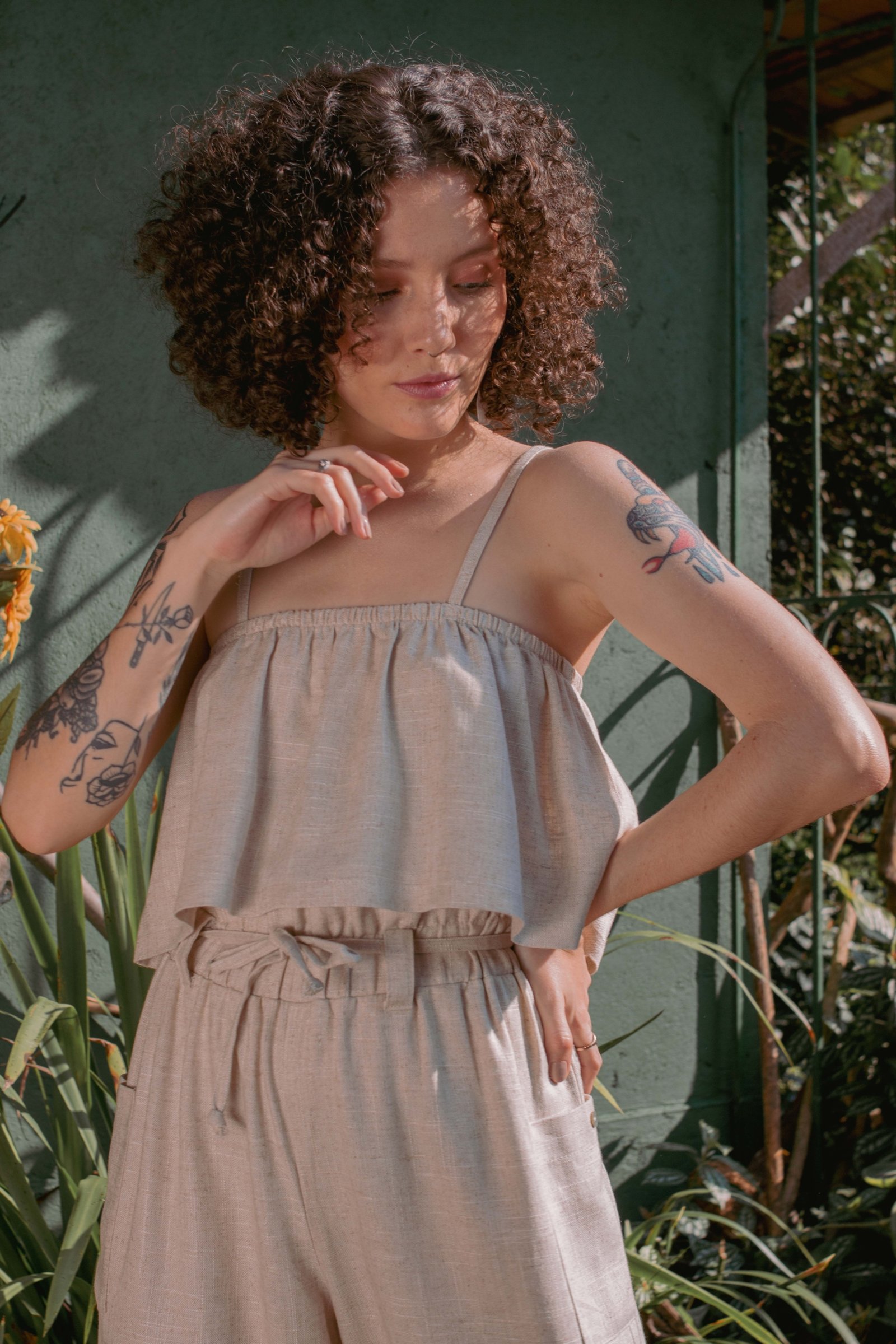 Blusa de linho Joana é fresca e feita pra te acompanhar nos dias mais leves. É feita em linho com viscose e tem um caimento perfeito. Possui alças reguláveis e modelagem mais curta, trazendo movimento.