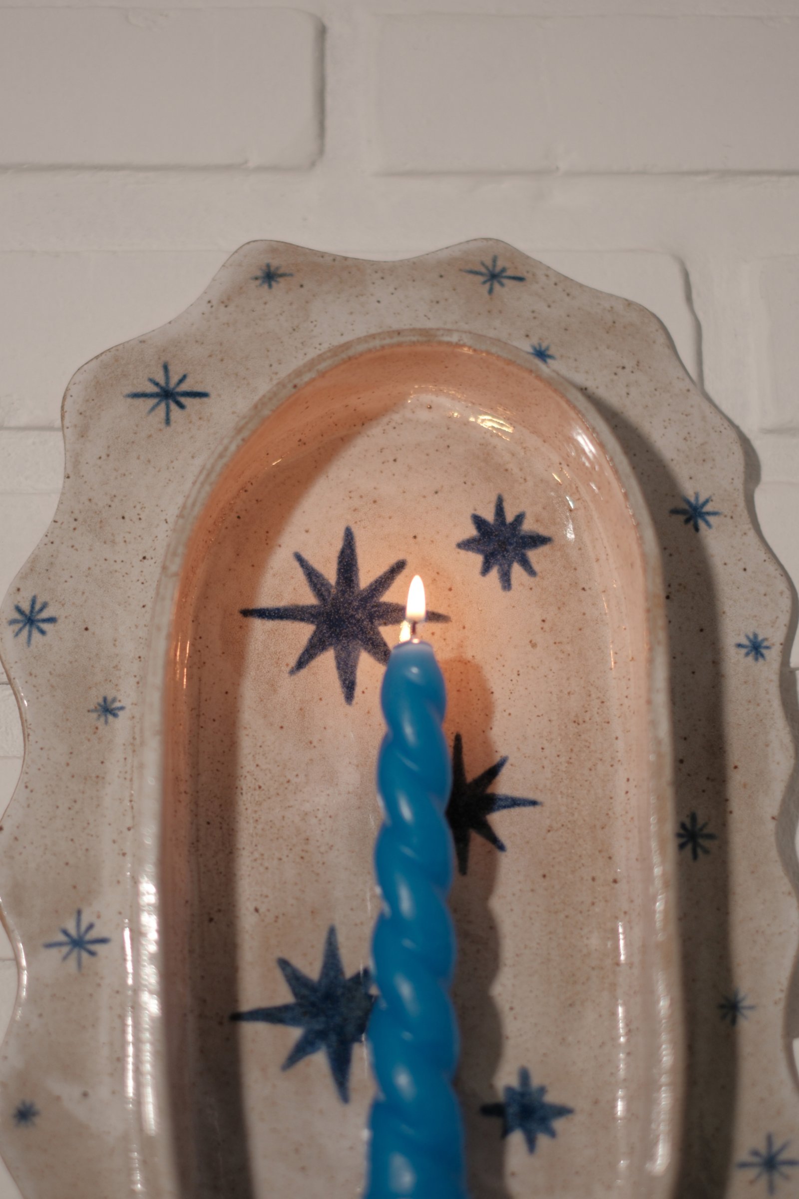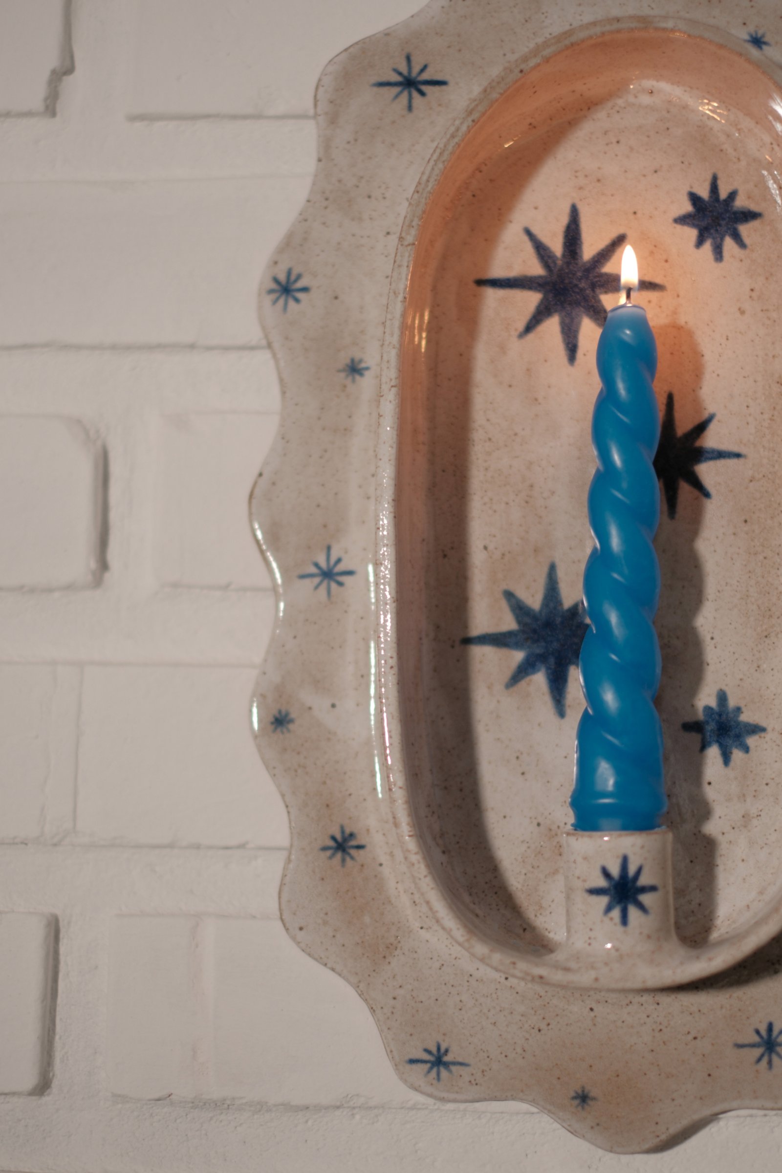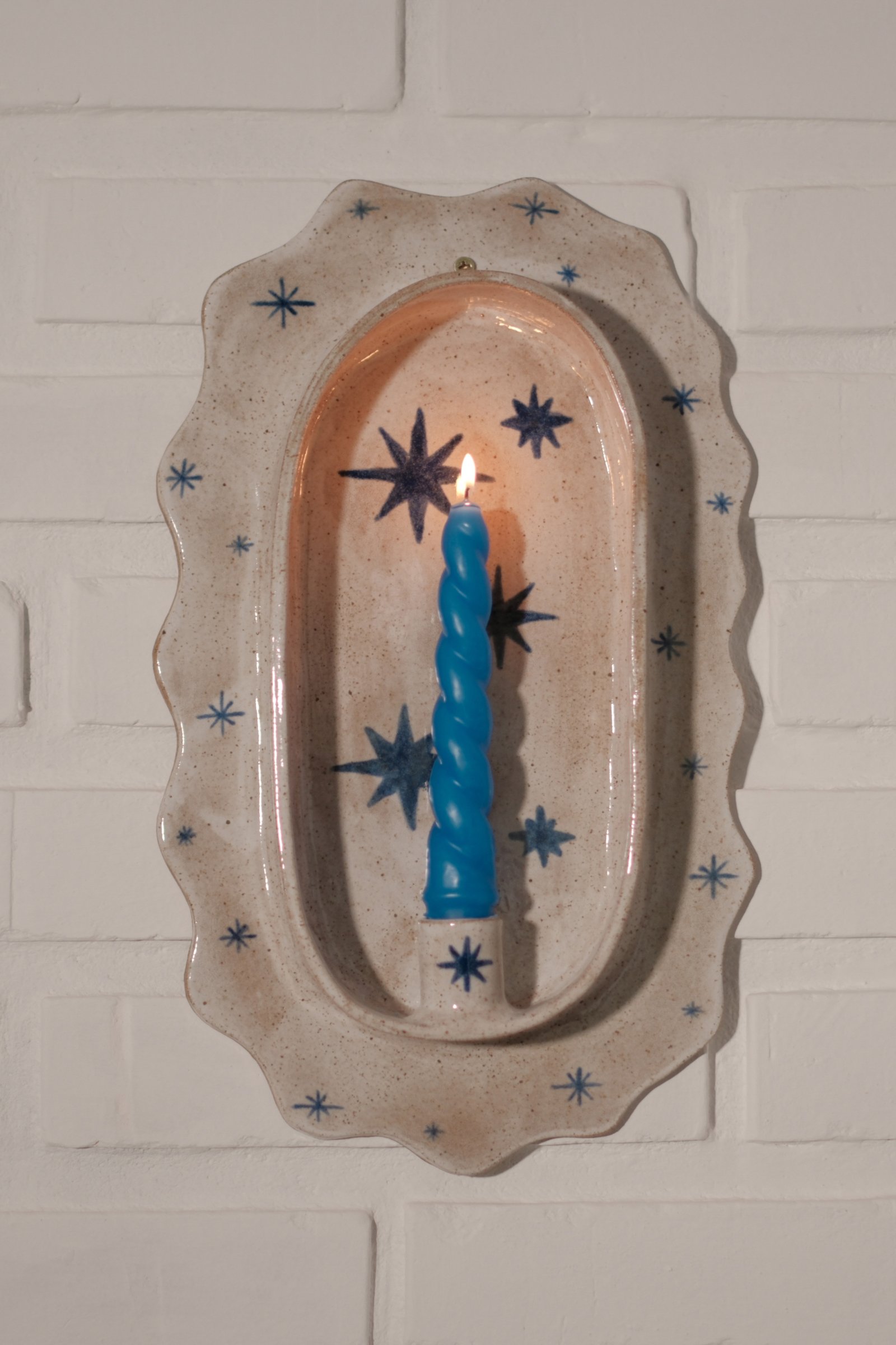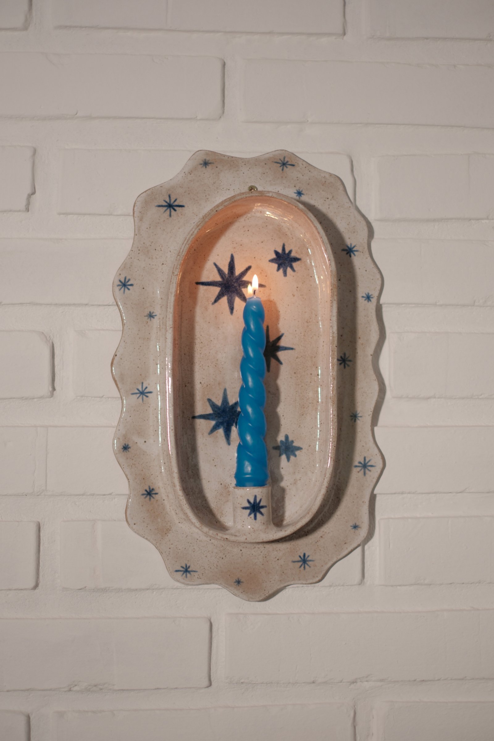 Oratório de cerâmica Estelar é uma peça única, foi desenvolvida com o intuito de manifestar seus pedidos ao universo da maneira mais bonita. Acompanha uma vela, parafuso e bucha para pendurar na parede. Feita em argila tabaco com chamote.
