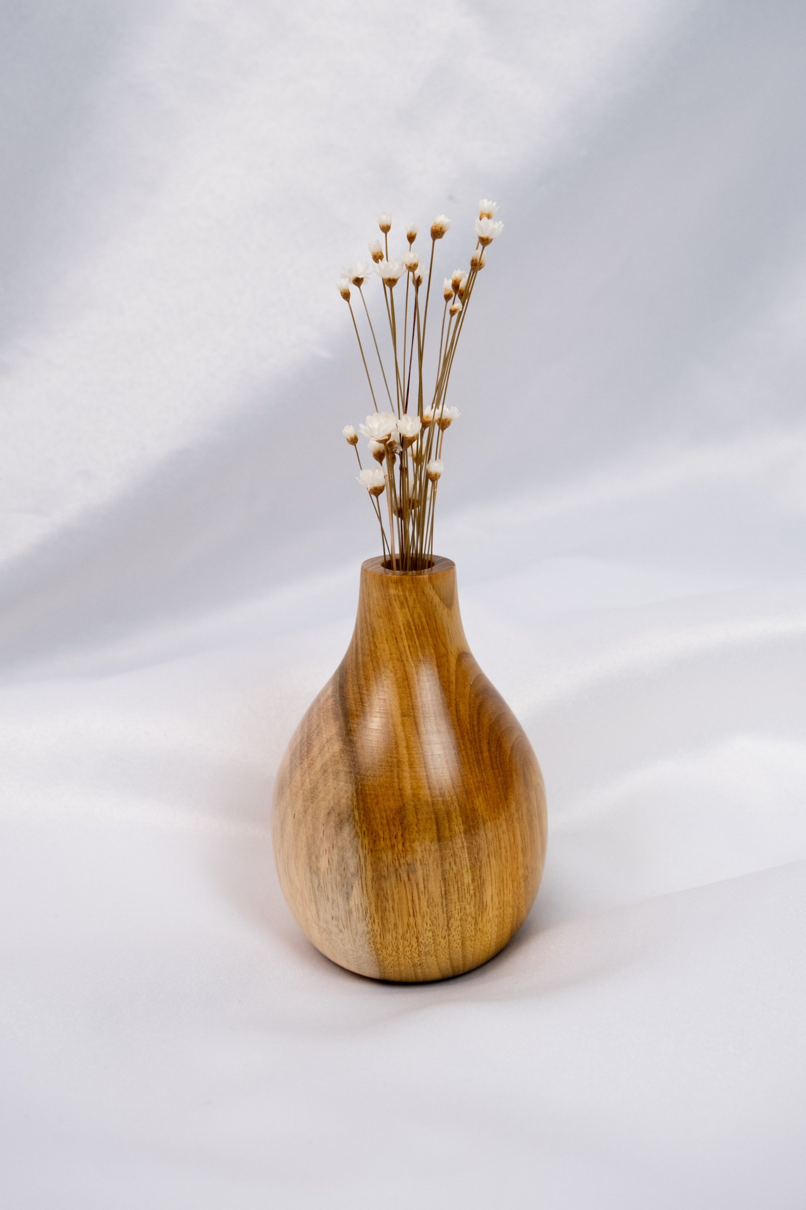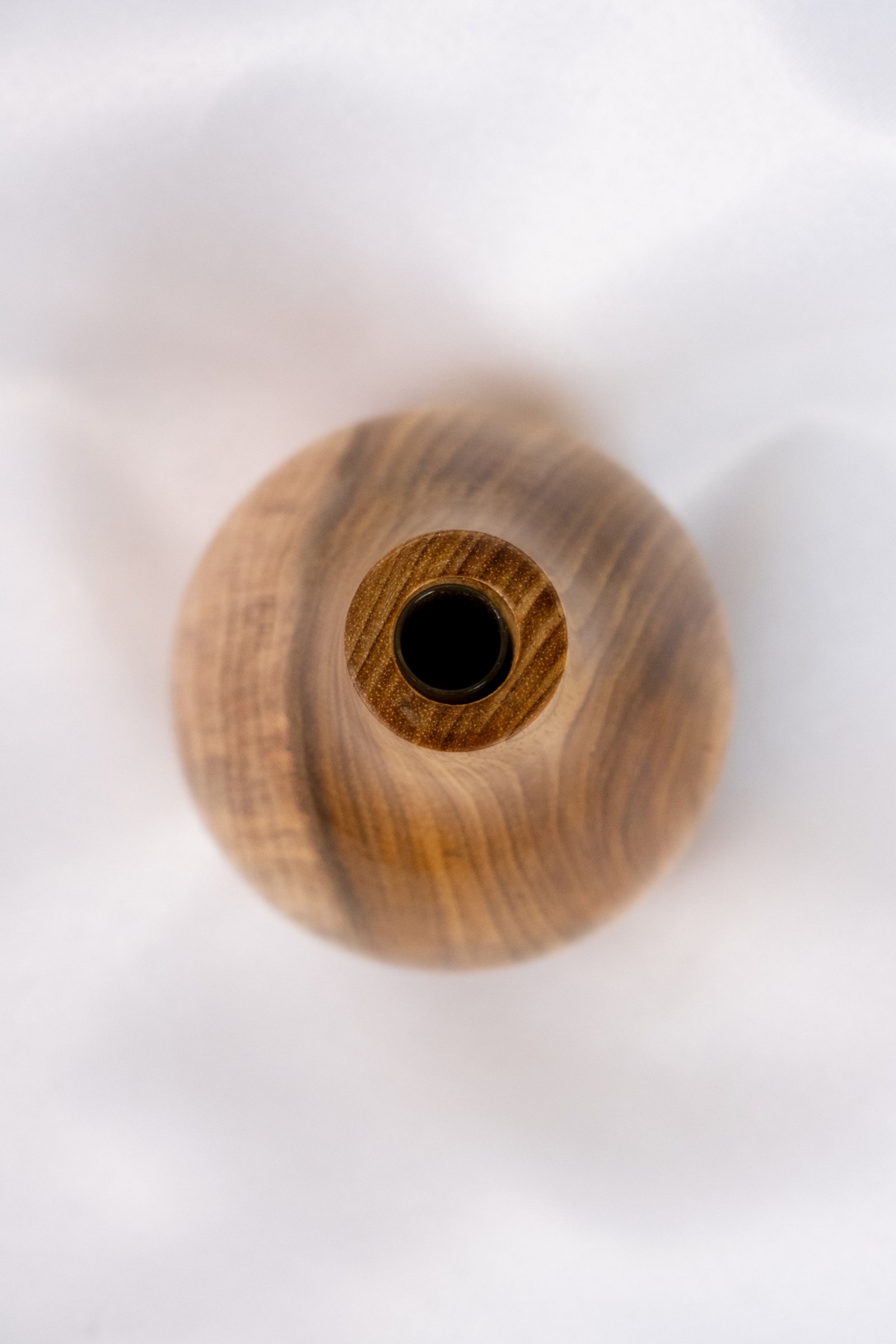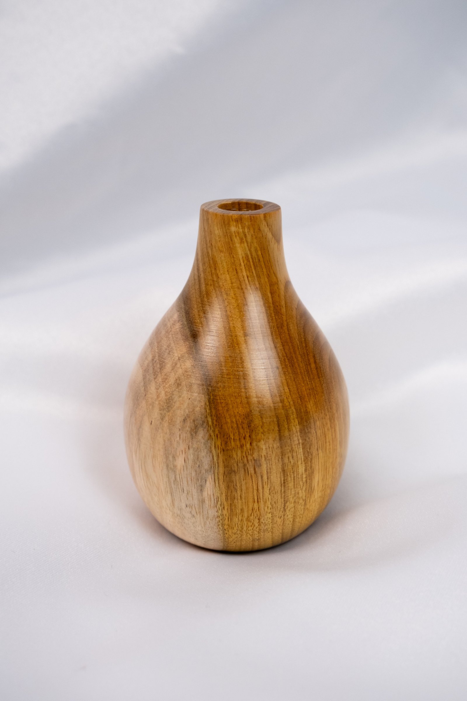 Vaso de madeira manualmente torneado em madeira de Araribá por uma artesã de Santa Catarina. Acabamento feito com seladora e cera de Carnaúba, possui suporte de vidro interno para colocar água.