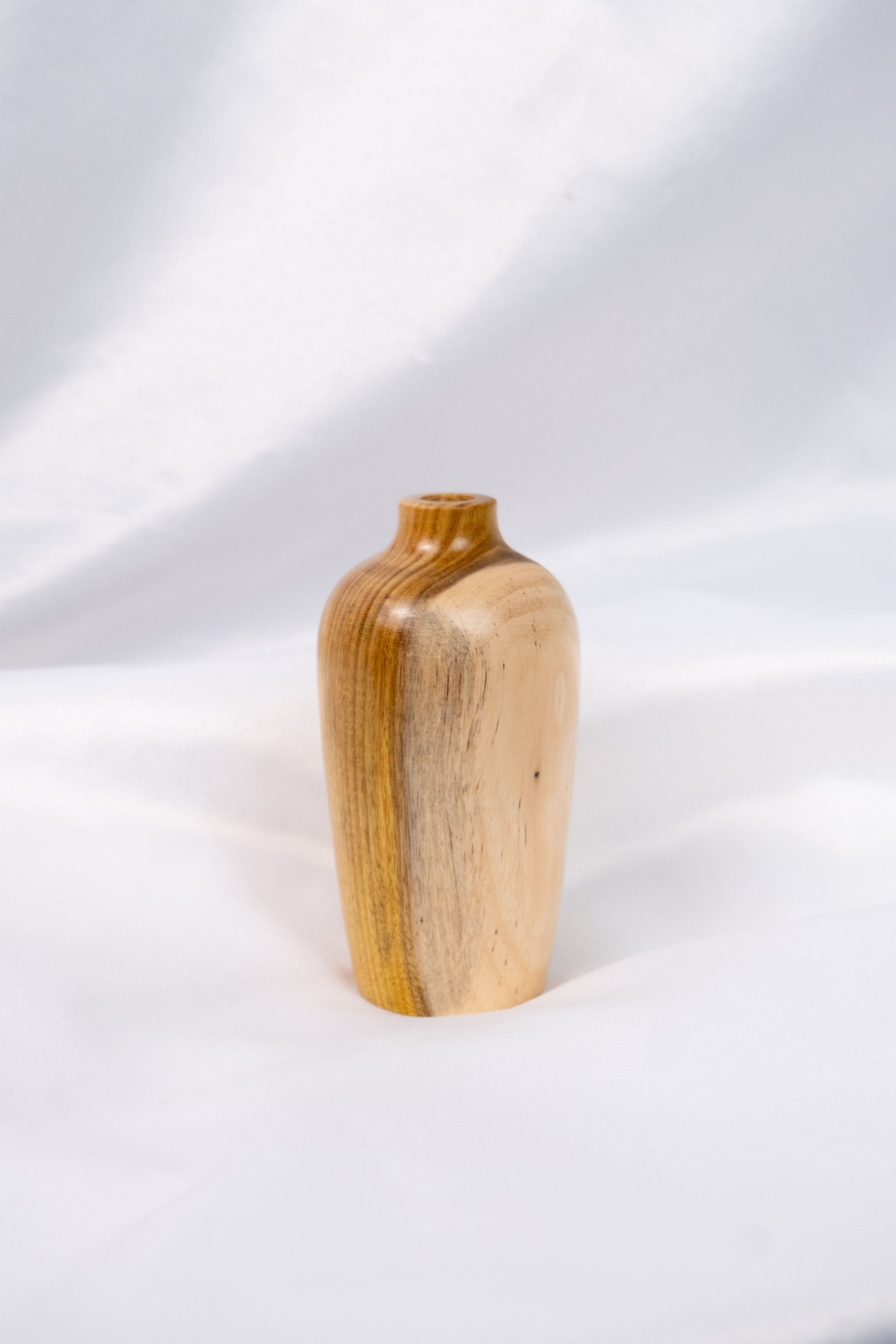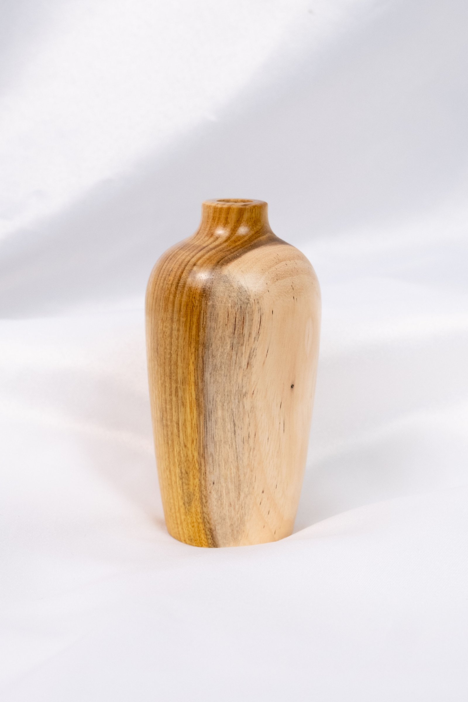 Vaso de madeira manualmente torneado em madeira de Araribá por artesã de Santa Catarina. Acabamento feito com seladora e cera de Carnaúba, possui suporte de vidro interno para colocar água. Medidas: ALtura 13cm Circunferência 20cm